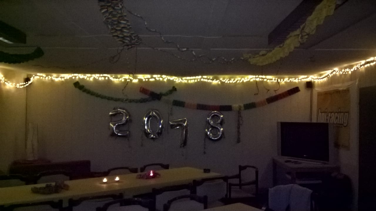 Ab 18:00 Uhr waren wir dann komplett. Gefahren wurde immer noch denn die Strecke wurde immer trockener. Mit 26 lieben Menschen haben wir einen riesen Abend verbracht. Das neue Dach hat sich absolut bewährt. Wir haben draußen und drinnen gefeiert. Es viel gegessen und auch das ein oder andere Kaltgetränk zu sich genommen. Die Stimmung war spitze. Es gab Benzingespräche, Alltagsgespräche und es wurde gesungen und getanzt. Die Feuertonne haben wir zum glühen bekommen. Mitternacht haben wir dann ein wunderschönes Feuerwerk auf der Strecke gemacht und sind prima nach 2018 gekommen. Zu Vorgerückter Stunde hat dann DJ Ralf das Zepter übernommen. Danke nochmal an alle für den tollen Abend.